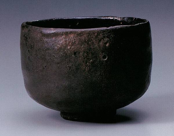 不管是黑樂還是赤樂,他們的燒成溫度都沒有到瓷化的1230度,此外樂茶碗的燒成時間相對較短,所以樂茶碗的燒結很不好。我們可以用馬卡龍來形容他,樂茶碗真的是皮酥內脆,拿茶杓敲茶碗時要舉輕若重輕輕敲。大家一定有聽過關先生說過曾在茶會時看到亭主把茶碗敲崩一大塊下來。燒結不好正是一個好樂茶碗的特徵,一個有點檔次的樂茶碗一定是輕的,因為燒結不好,這樣茶碗在手中是溫而不燙手的。敲起來的聲音悶悶的,大家的稽古茶碗敲起來應該都是清亮的噹噹噹!