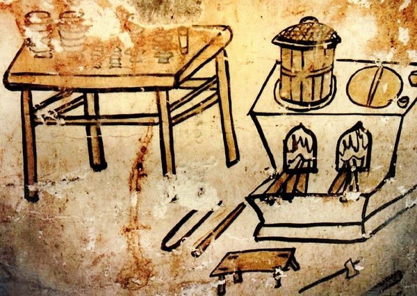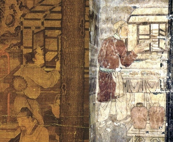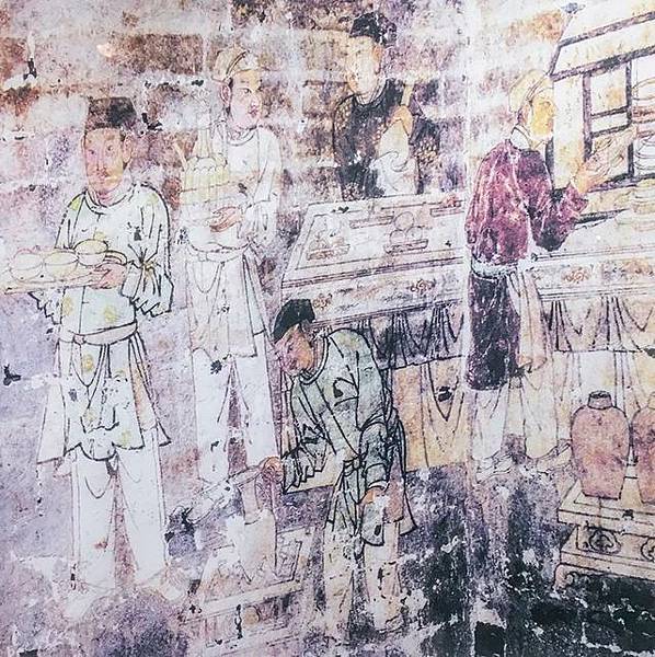 吐槽了好幾次《知否知否應是綠肥紅瘦》,這次這廚房倒是蠻到位的,除了架子上的四繫罐形制不太對(要瘦長一點),酒壺不太對(見墓壁畫)其他還好。