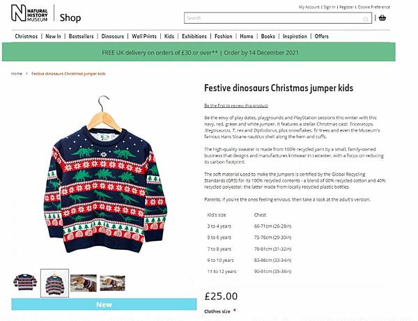 以倫敦自然史博物館這隻恐龍為例,這是他們是為了推銷該館的符合聖代節氣氛毛衣的噱頭,毛衣有恐龍及菊石花紋喔,順便問問顧客「你多久沒來看恐龍了啊?」按照我先前的建議當然不是要那間小博物館去搞隻恐龍,穿個亂七八糟的衣服什麼的,這種純模仿是弄來搞笑的嗎?