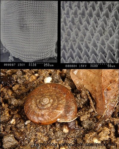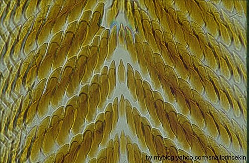 下圖的皺大臍蝸牛及扭蝸牛都是有肺類,前者是草食性,後者是肉食性蝸牛,大家比一比看看齒舌有啥不同。