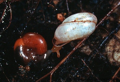 扭蝸牛正在吃琉球鱉甲蝸牛